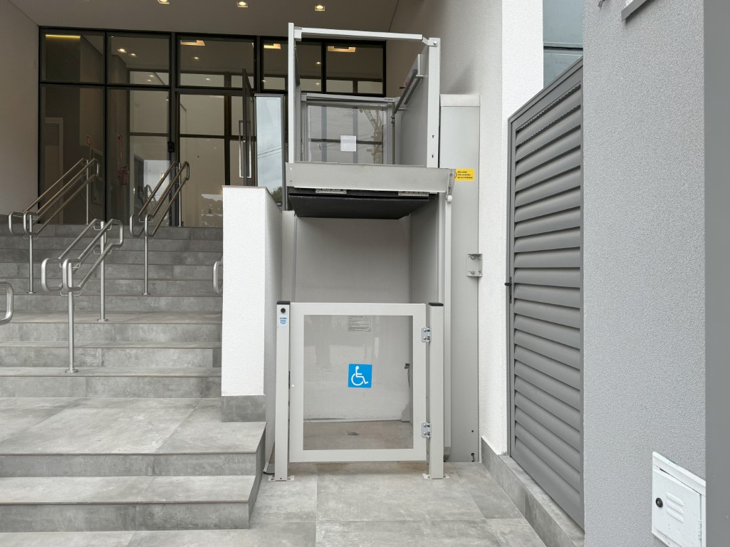 Ideal para promover a acessibilidade entre andares com a máxima segurança e conforto, a Plataforma de Acessibilidade é a solução perfeita para bancos, condomínios, escolas, shoppings, clínicas, comércio e demais locais públicos. Nossos modelos se adaptam a diversos ambientes, permitindo aos usuários acesso seguro com total autonomia, reforçando a confiança e o padrão de excelência Daio em cada detalhe.